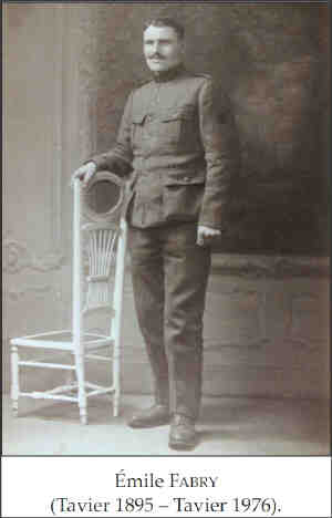 Prénom usuel: Emile. Né au hameau de La Chapelle. Engagé Volontaire de guerre le 12 février 1915 au 5ième Régiment du Génie. Blessé le 4 octobre 1918. Démobilisé le 26 août 1919.